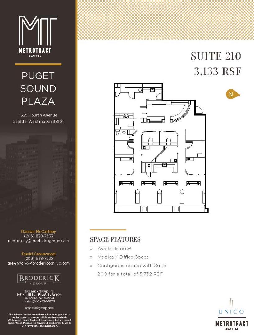 + Available now! + Medical/ Office Space + Contiguous option with Suite 200 for a total of 5,732 RSF