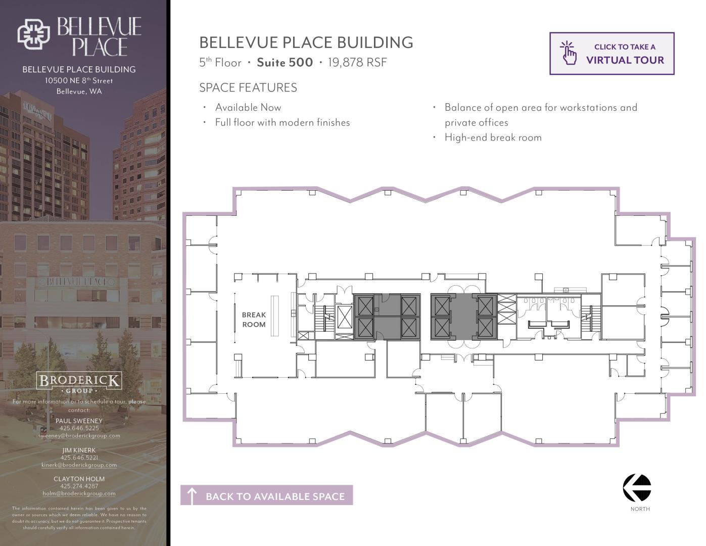 + Full floor with modern finishes + High-end break room + Balance of open area for workstations and private offices