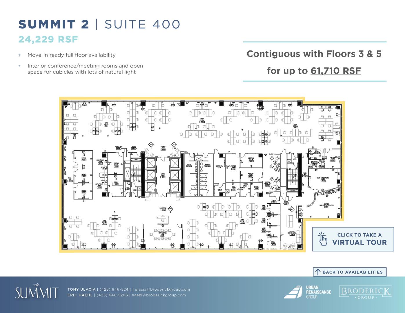 + Move in ready full floor availability + Interior conference/meeting rooms and open space for cubicles with lots of natural light