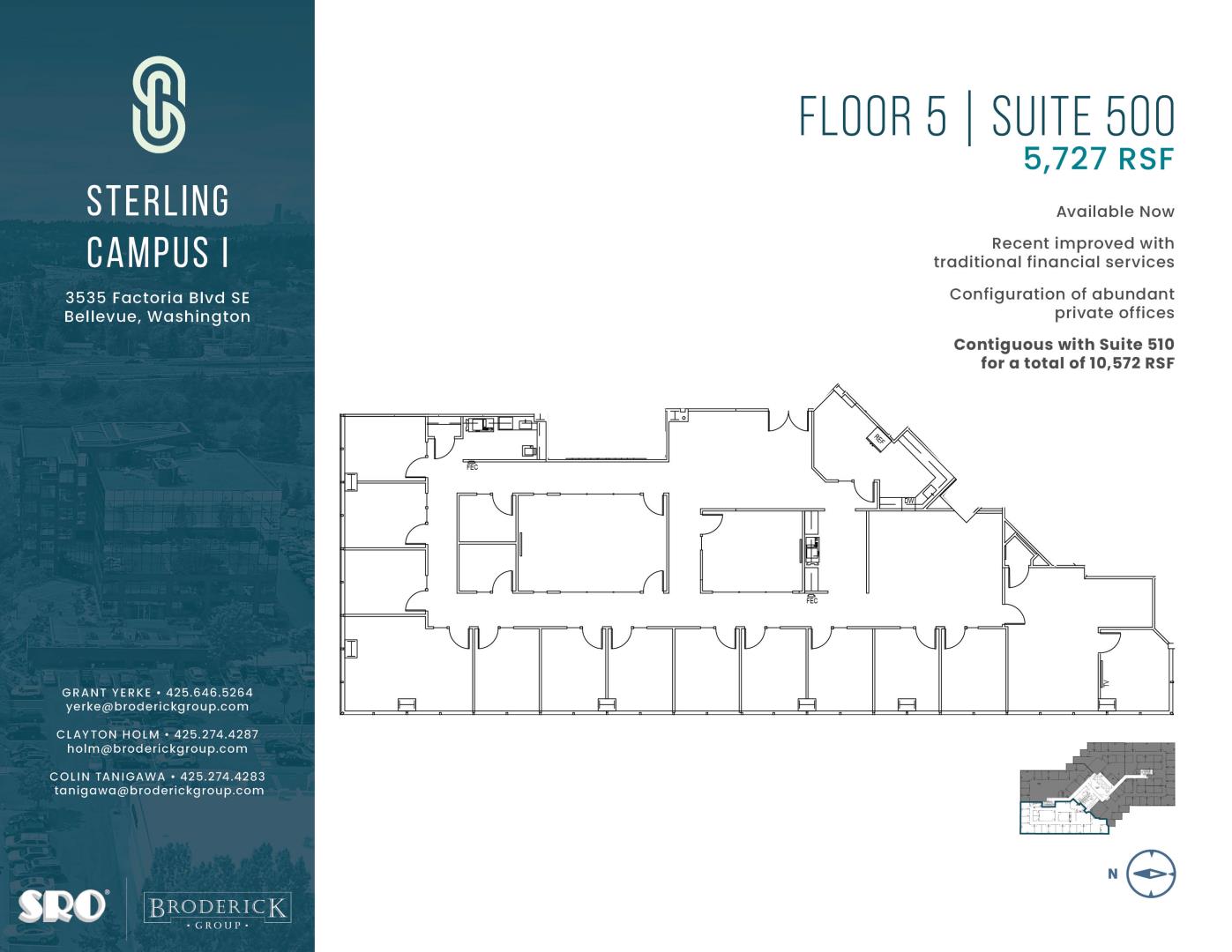 Excellent location and visibility at the junction of I-405 & I-90. 4 stalls per 1,000 USF of parking includes free covered parking. Unmatched retail amenities nearby. Locally owned and managed by Sterling Realty Organization. Fiber optic capability in the