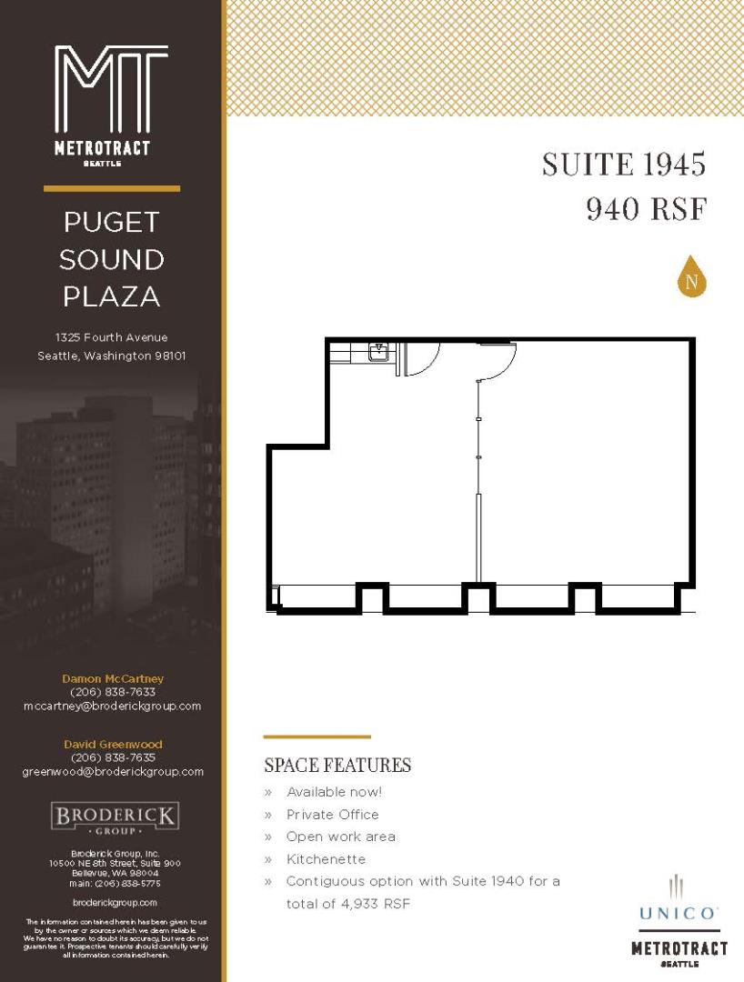 + Private Office + Open work area + Kitchenette