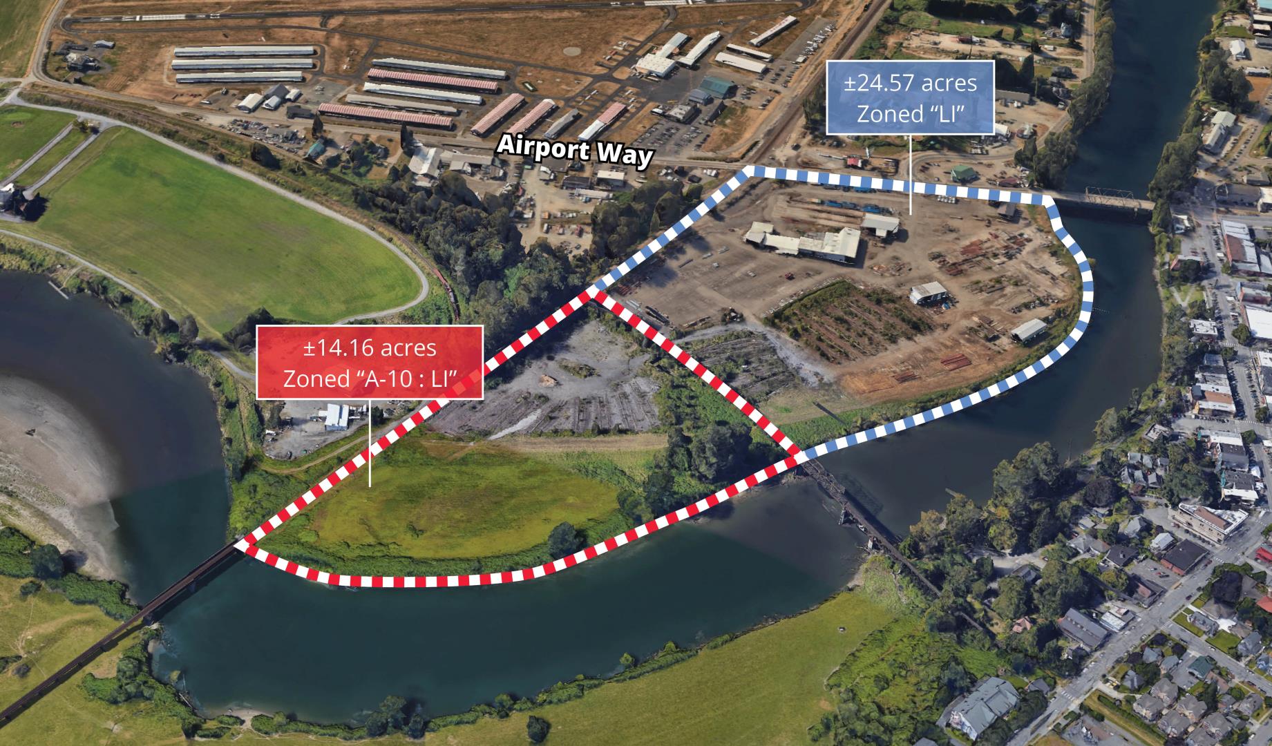 •±38.73 acres total ±28.31 usable acres (±24.24 acres west of trestle & mostly paved; ±4.07 acres east of trestle that is graveled) •Located immediately south of downtown Snohomish •Easy access to Hwy-9 and SR-2 •7 Buildings totaling ±47,254 SF •Zoning (Snohomish County Jurisdiction) ±24.57 acres west of trestle zoned “LI” (Light Industrial) ±14.16 acres east of trestle zoned “A-10 : LI” (Agricultural 10: Light Industrial) •Fully fenced, except for area bordering Snohomish River •Heavy 3-phase power service on site. •Asking Lease Rate: $0.08/SF/Month + Utilities