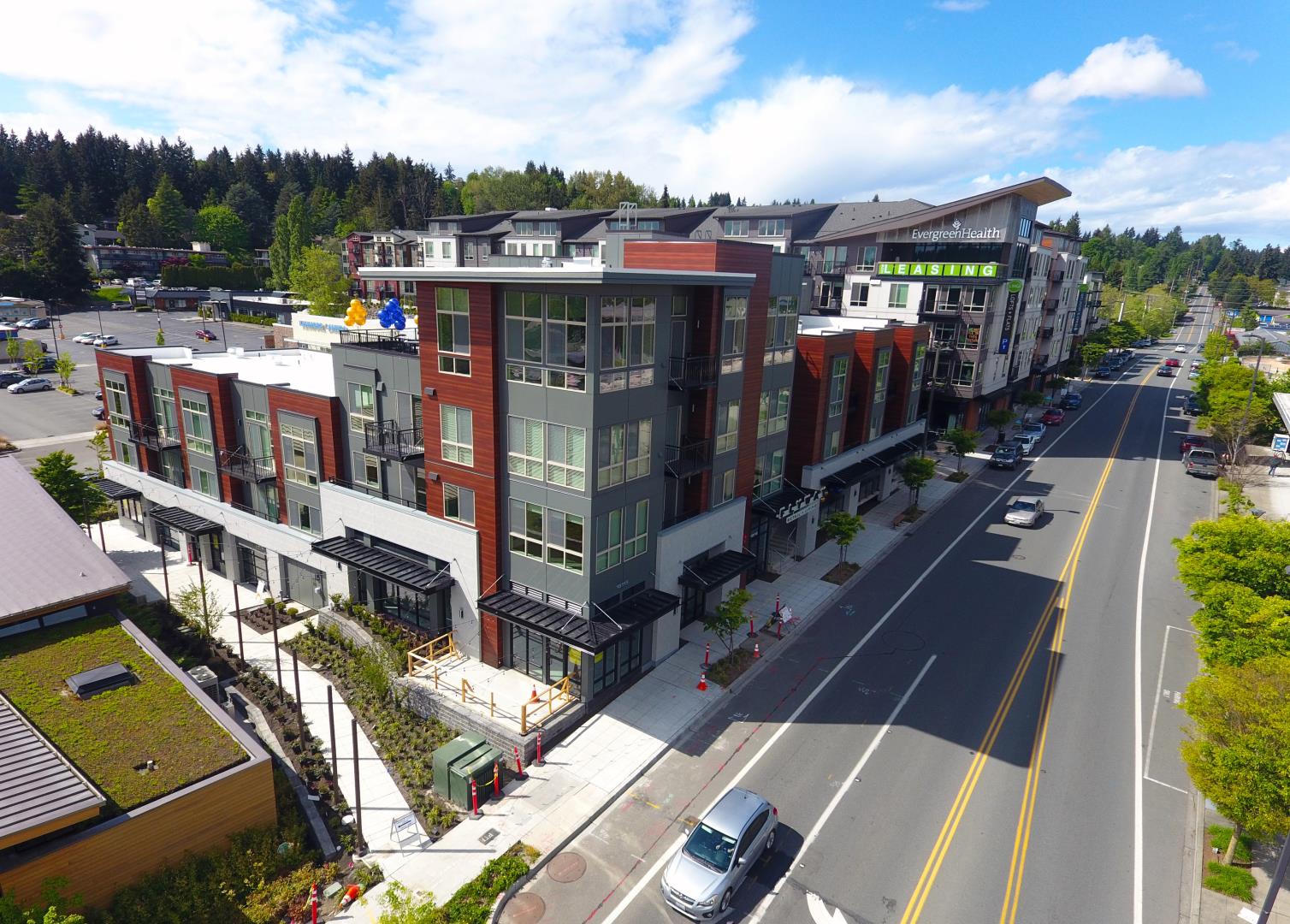 Mixed-use development forming the city's retail, dining, and entertainment hub. Adjacent to Town Green Plaza, Seaplane Restaurant, Evergreen Health, and dental providers and more than 300 residential units located within walking distance.