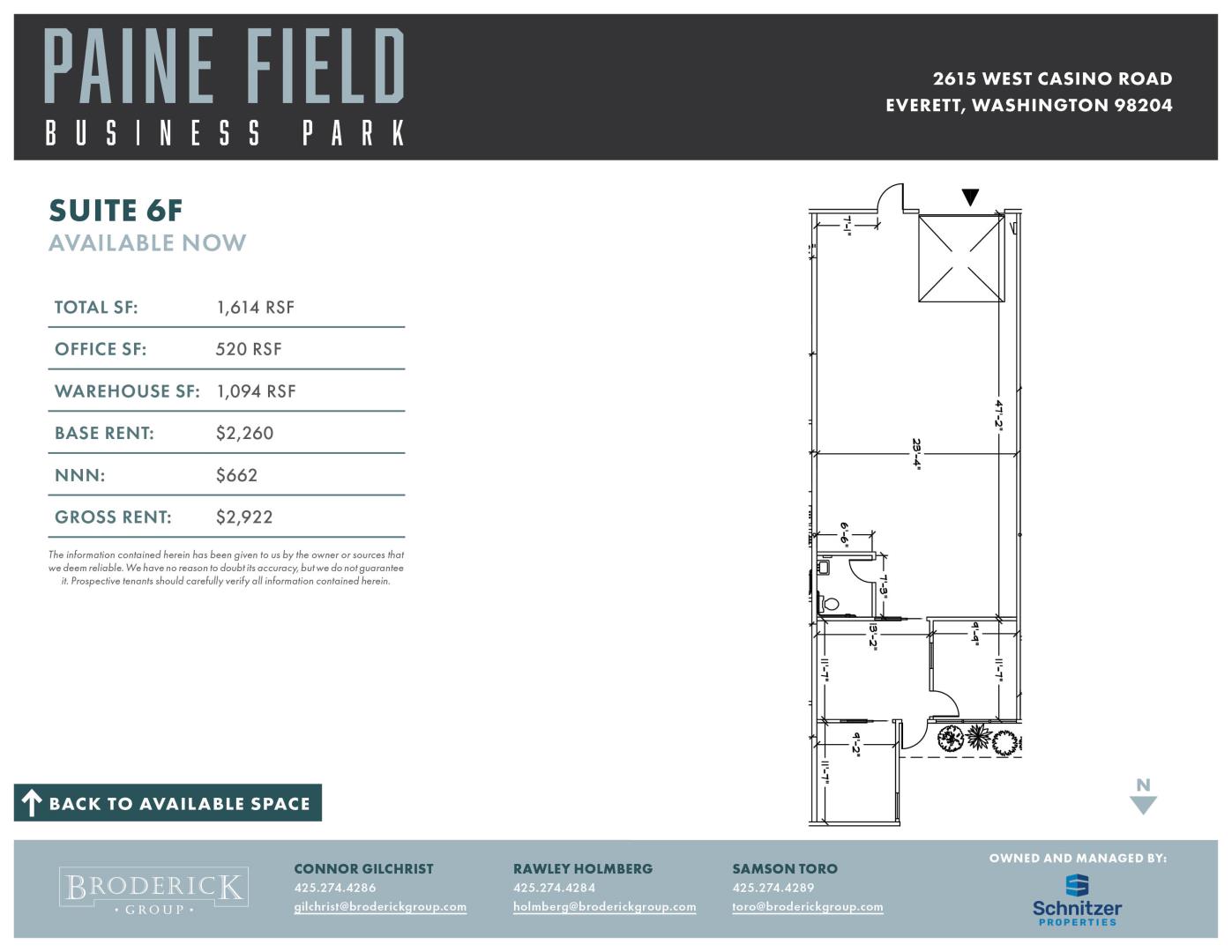 High profile space catering to service companies, small businesses, sales and distribution centers. Grade level loading. Spaces are "move-in" condition. Convenient South Everett location. Across the street from Boeing 777 & 787 plant. Direct access to SR-