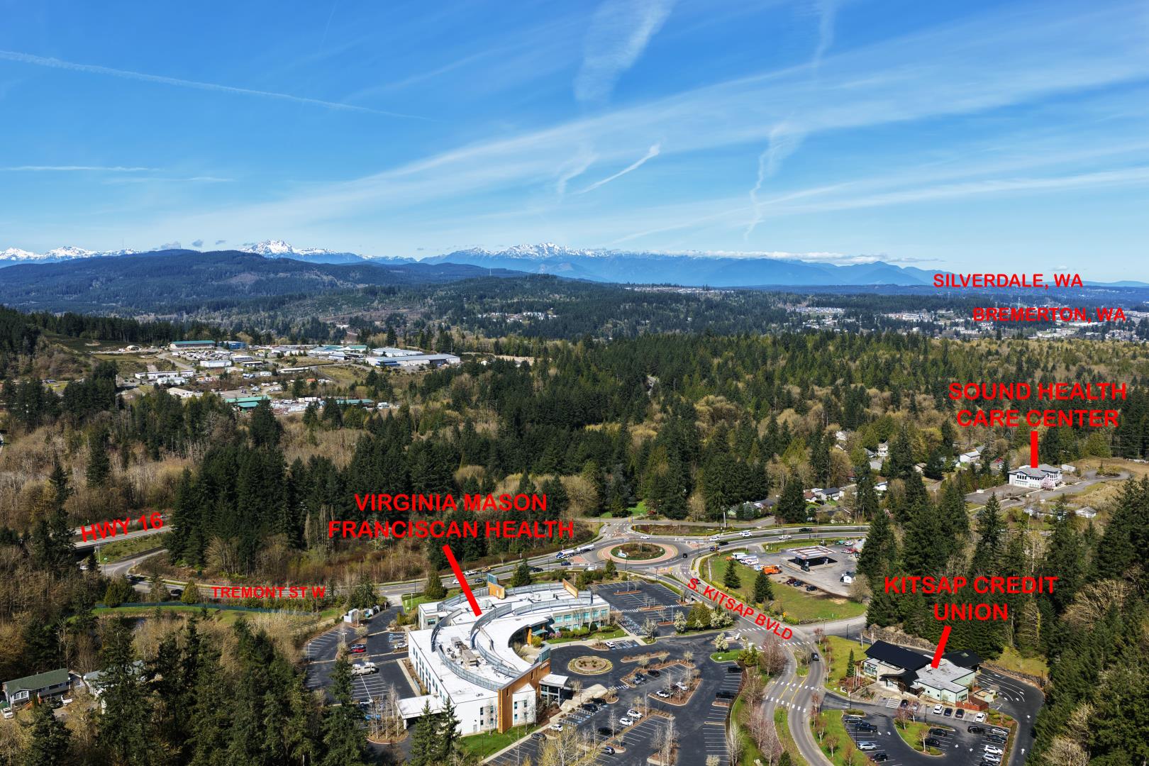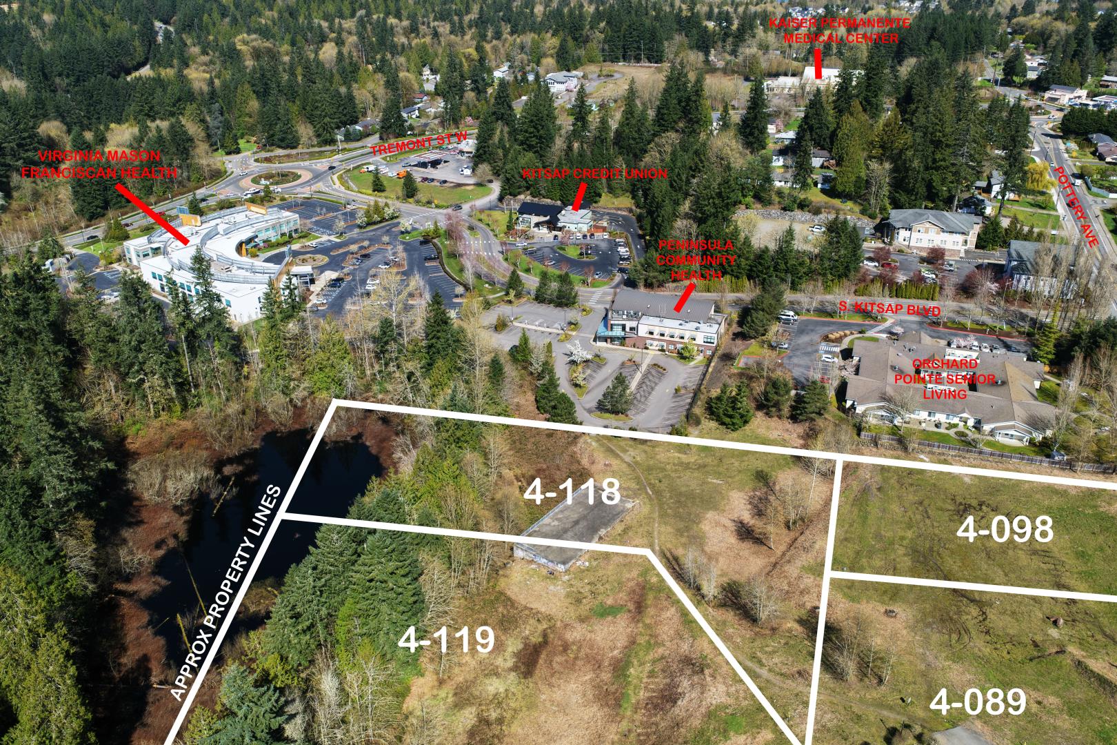 Premier medical/professional office development site located in the heart of South Kitsap’s rapidly expanding healthcare corridor. Positioned at the highly trafficked Tremont/Pottery Ave/Hwy 16 intersection, this property sits within the region’s established medical, dental, and professional services hub. All utilities are stubbed to the site, providing a streamlined path to development within the City of Port Orchard. Adjacent to the Harrison Medical Center urgent care expansion, the location offers immediate synergy with surrounding healthcare providers and continued growth in the area. Ideal for medical, dental, or professional office users seeking expansion or relocation in a high-demand service area. Excellent access to and from Highway 16, combined with attractive territorial and mou