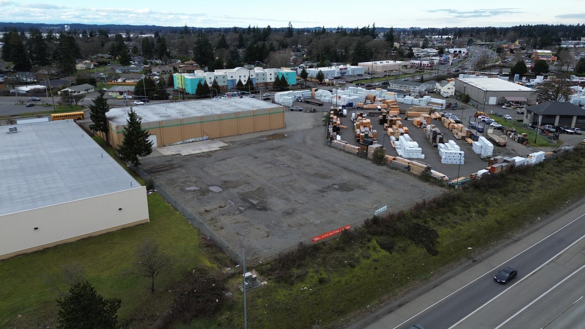 Prime Lakewood IOS site with warehouse and yard, featuring I-5 frontage, strong access to SR-512, and proximity to the Port of Tacoma. Functional layout with fenced yard, grade-level loading, and excellent visibility for industrial users.