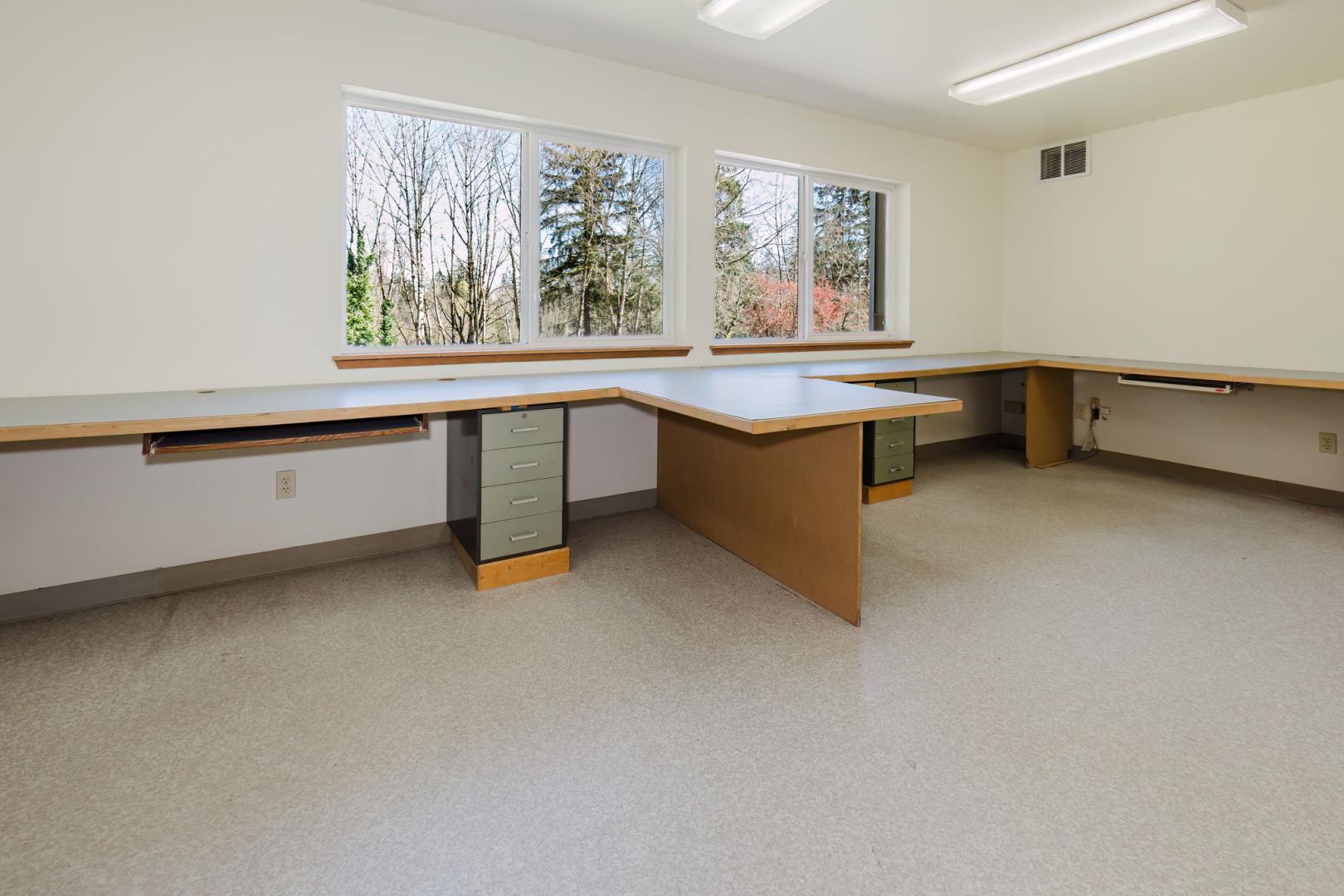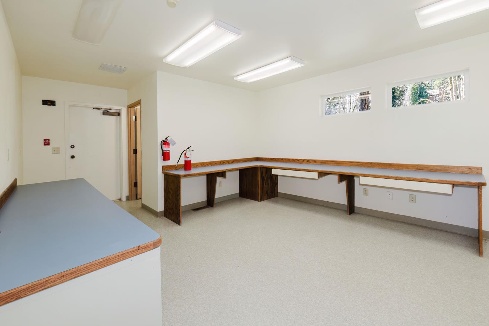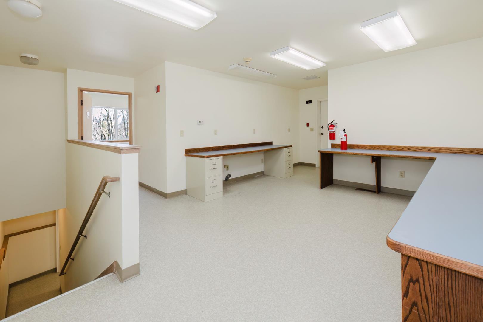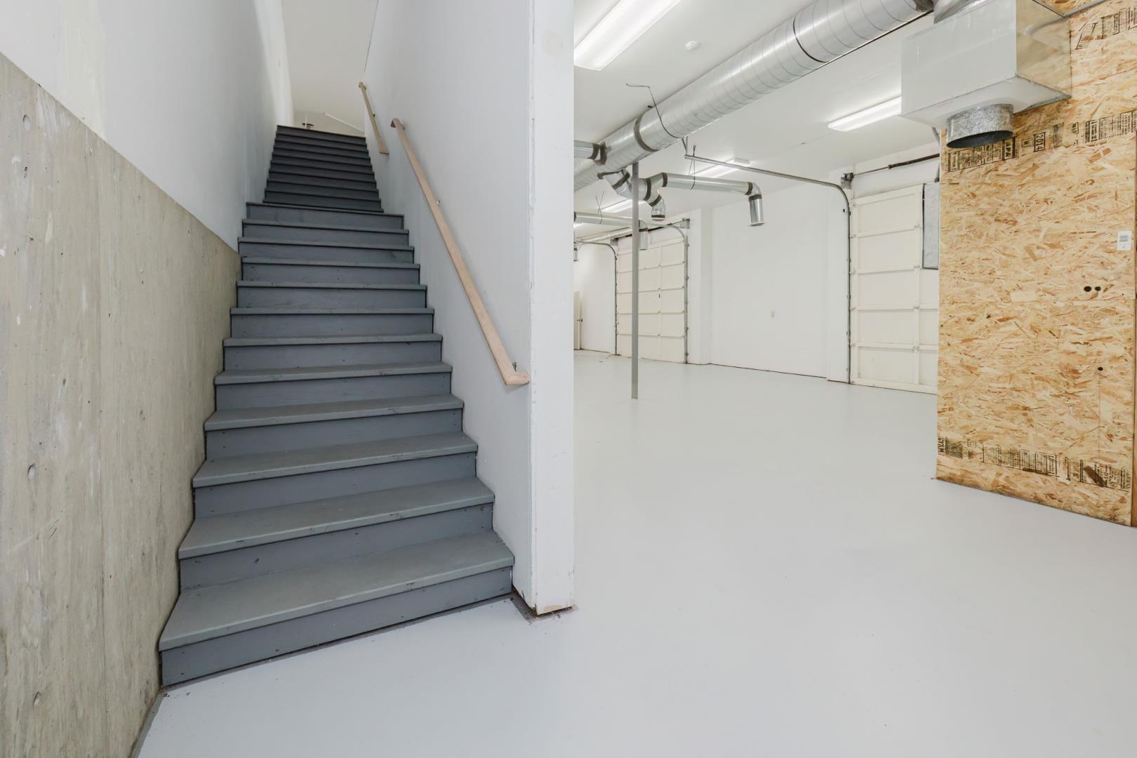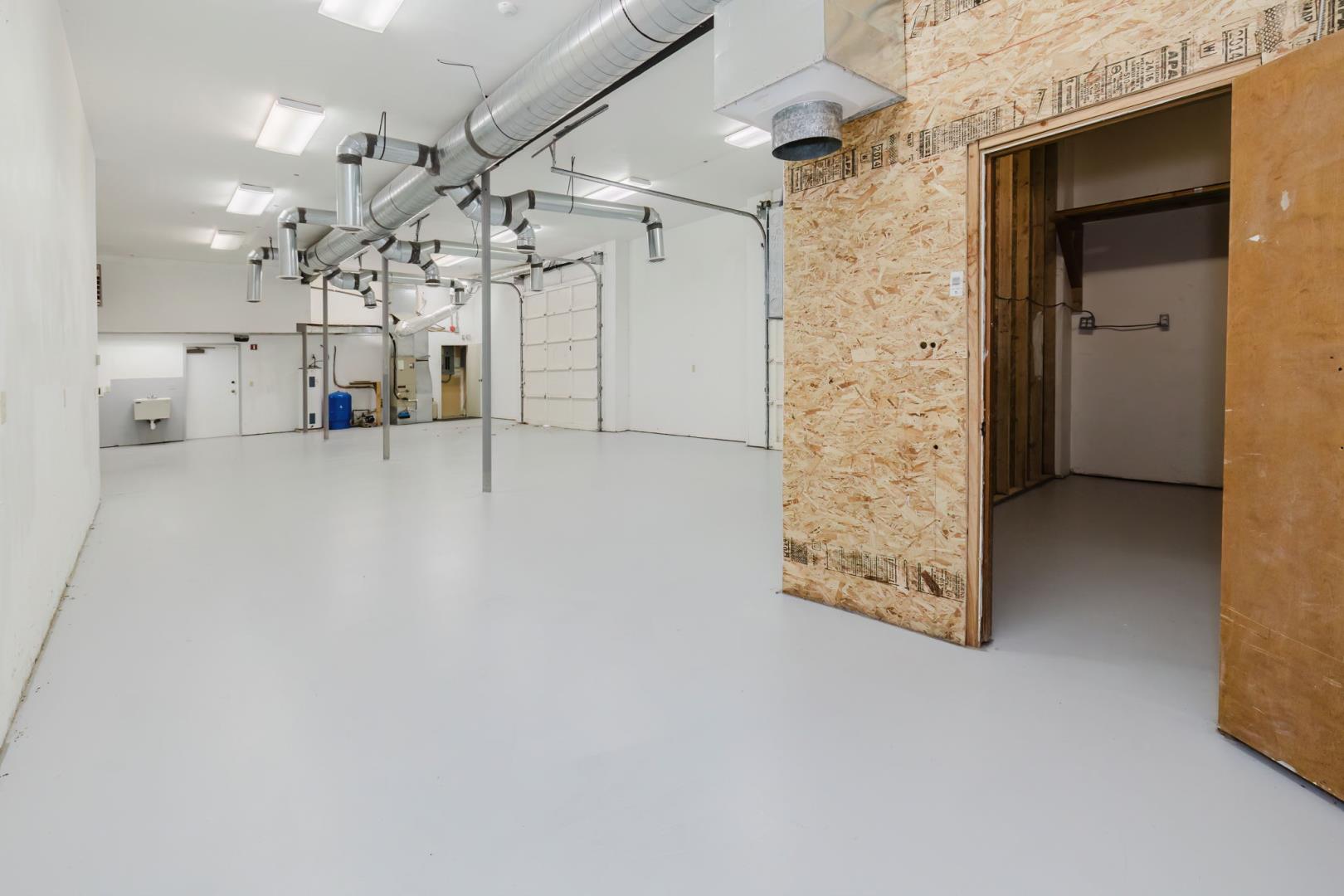 Two floor-level roll-up doors. Reception area, kitchen & bathroom on the ground floor with warehouse area. 2nd floor has another bathroom, offices, conference room, IT area, etc. Stairs at each end of the building provide access to both floors.